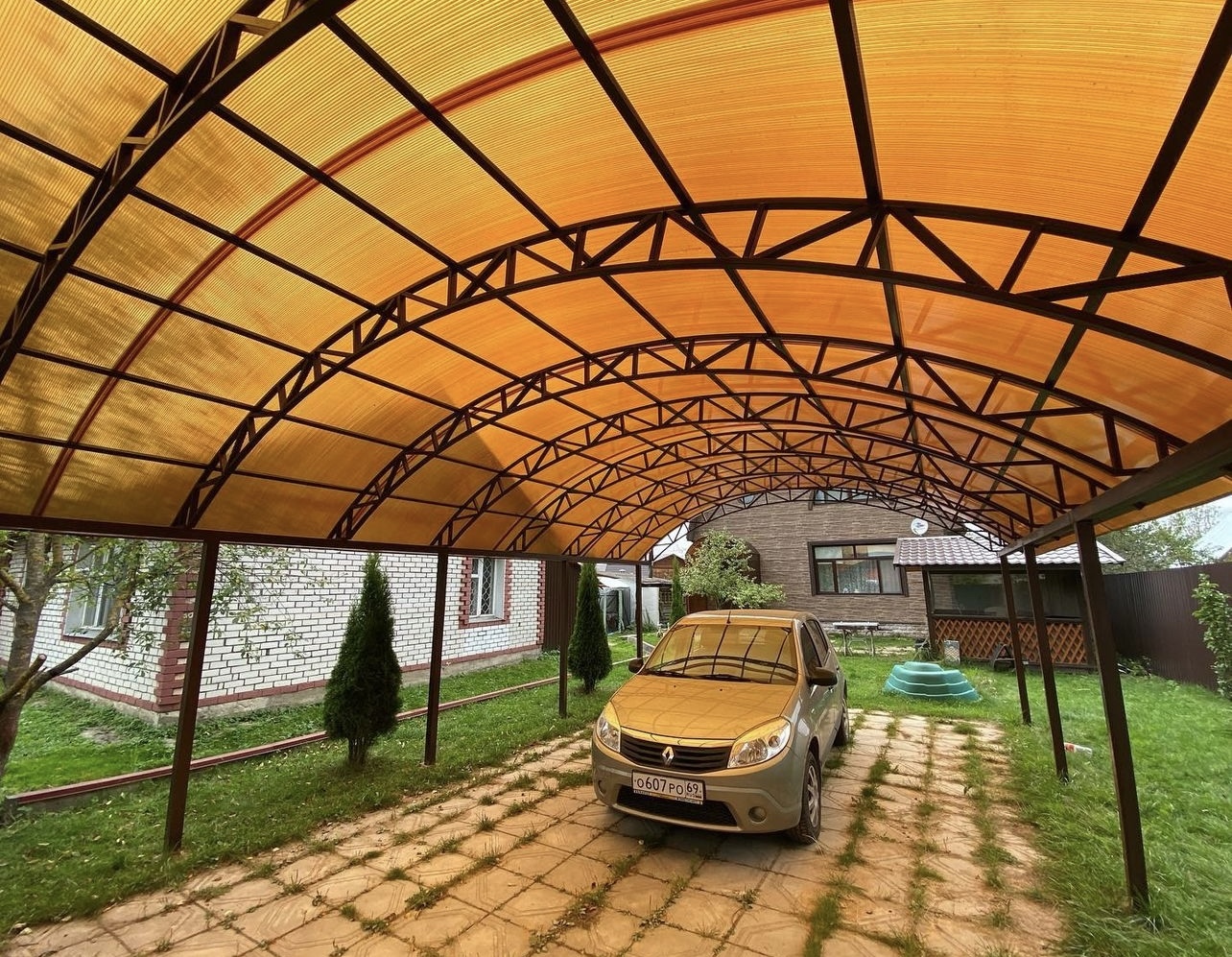 Клиент получил прочное и светопрозрачное покрытие, которое сочетает внешний вид профнастила и преимущества монолитного поликарбоната. _______________ Хотите также? Пишите нам на WhatsApp по номеру ниже: